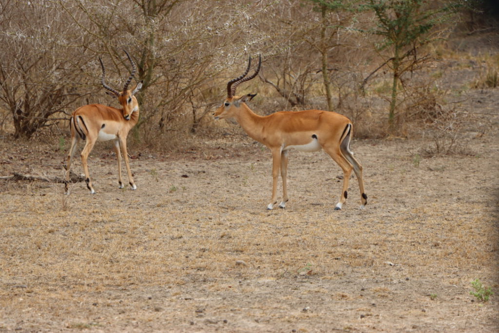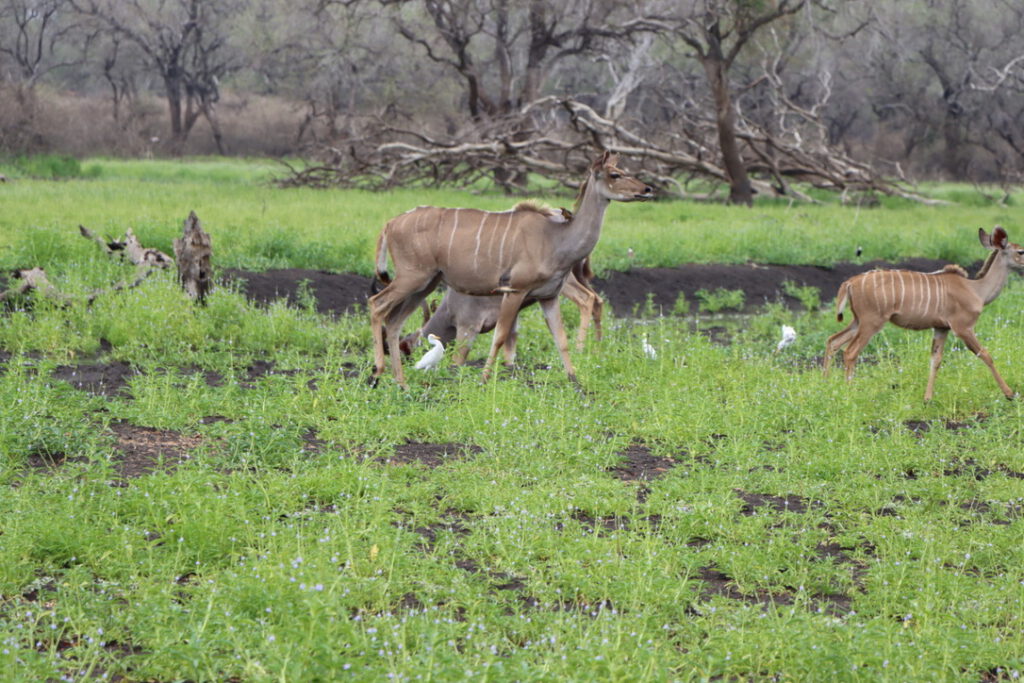 Der Nyerere-Nationalpark beherbergt mehrere Antilopenarten, die sowohl die offene Savanne als auch die dichten Waldgebiete des Parks bevölkern. Zu den häufigsten Antilopenarten zählen die Impala, die große Herden bilden, sowie die Gnu- und Thomson-Gazellen, die sich in den offenen Graslandschaften und entlang der Flüsse aufhalten. Besonders auffällig ist die hohe Population der wasserliebenden Kudu-Antilopen, die oft in der Nähe von Gewässern zu finden sind.